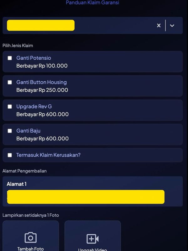 Pastikan anda sudah mendaftarkan diri dan hexohm nya di sistim kami. Per 1 Januari 2025 semua klaim garansi hanya bisa di terima melalui sistim baru ini,